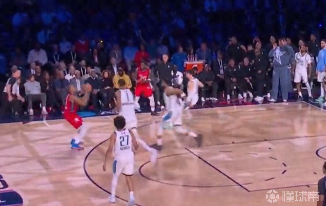 北京时间2月16日NBA全明星正赛循环赛第一轮,美国星辰队37-35战胜世界队。