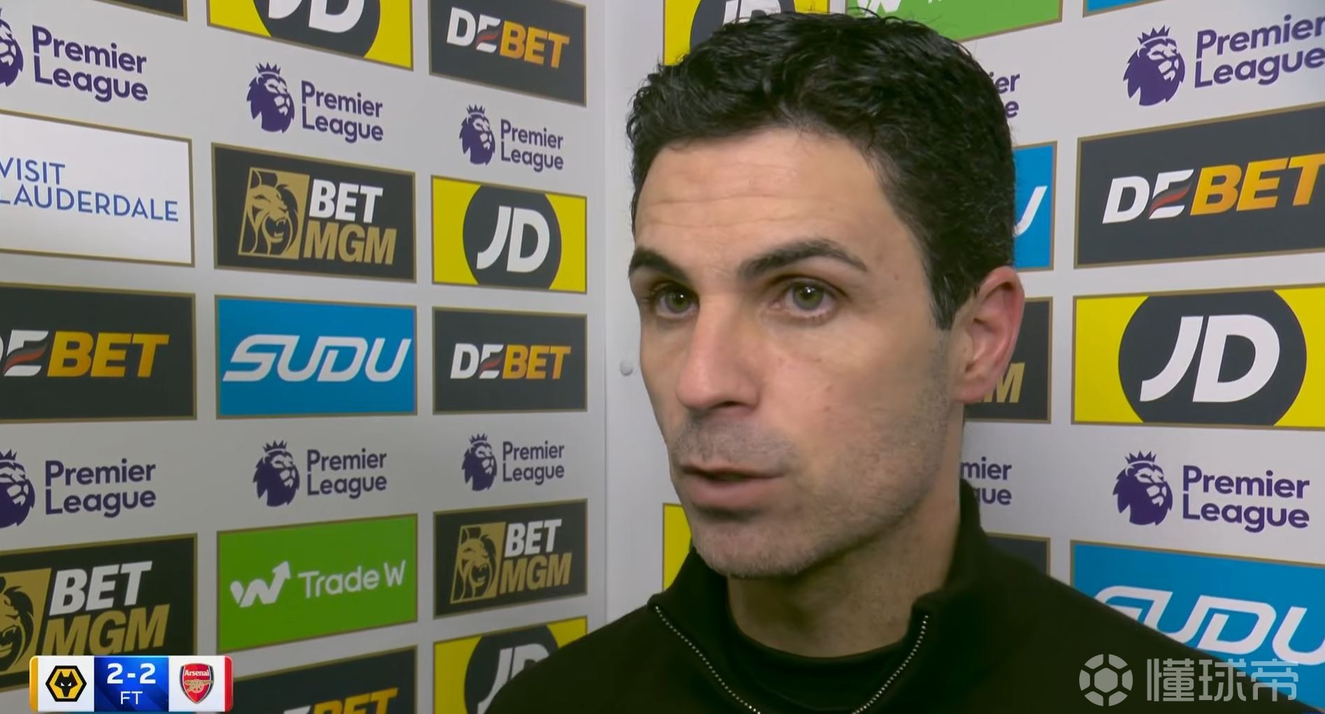 英超联赛第31轮,阿森纳在客场2-2战平狼队。赛后,阿森纳主教练阿尔特塔接受了《当日比赛》节目的采访。