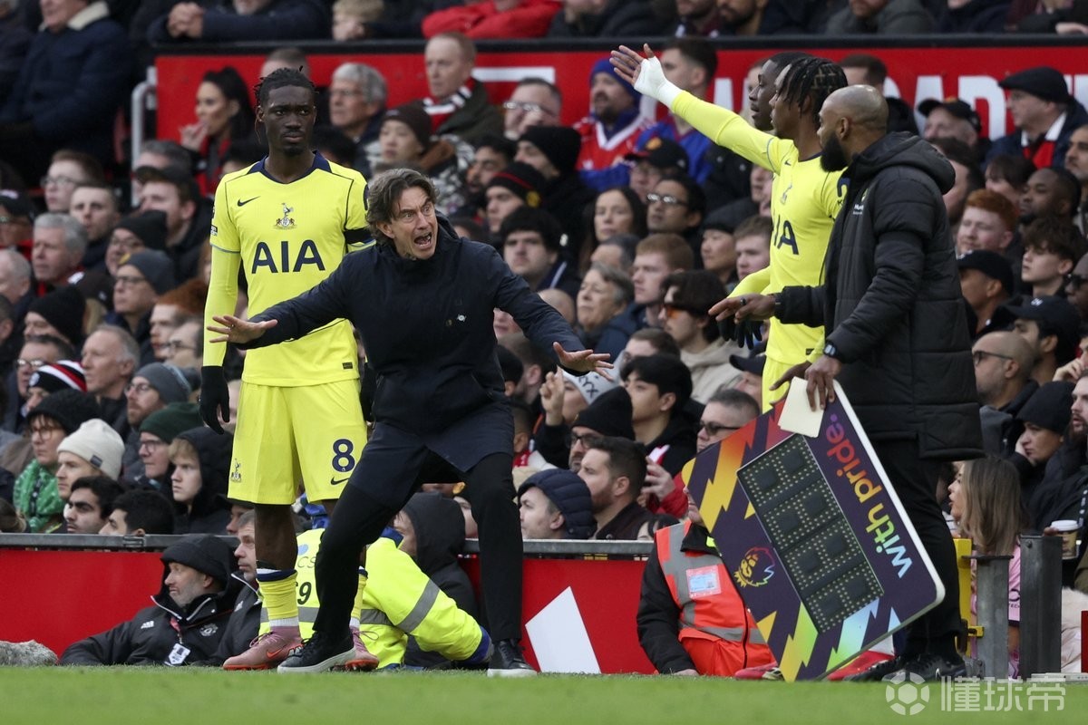 此役客场对阵曼联,在队长罗梅罗被罚下后,少打一人的热刺最终0-2告负。