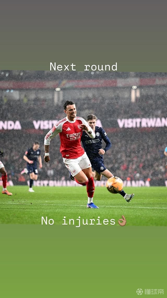 阿森纳在英格兰足总杯第四轮主场4-0大胜维冈竞技成功晋级下一轮,但首发出场的本-怀特在比赛的尾声阶段疑似因伤被换下引发了不少担忧,对此这名后卫表示无需杞人忧天。