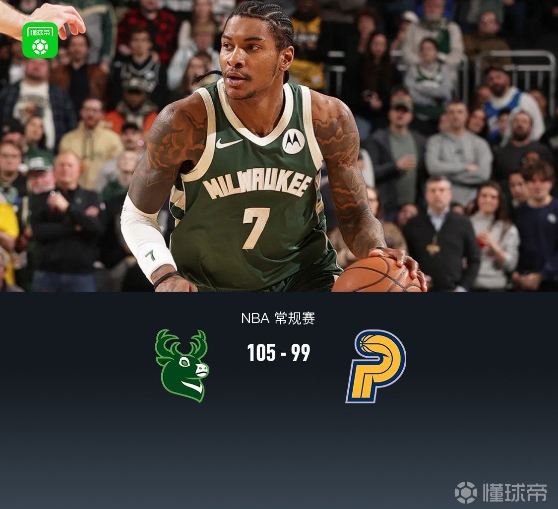 雄鹿拒逆转105-99步行者,波特22+7+8,西亚卡姆19+6
