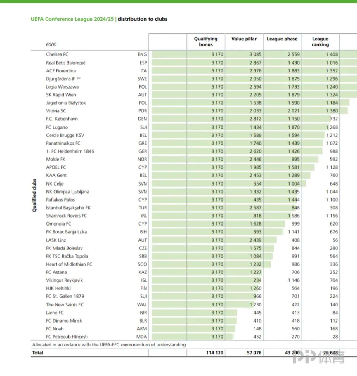 欧协联总奖金:冠军切尔西2182万欧,贝蒂斯1708万