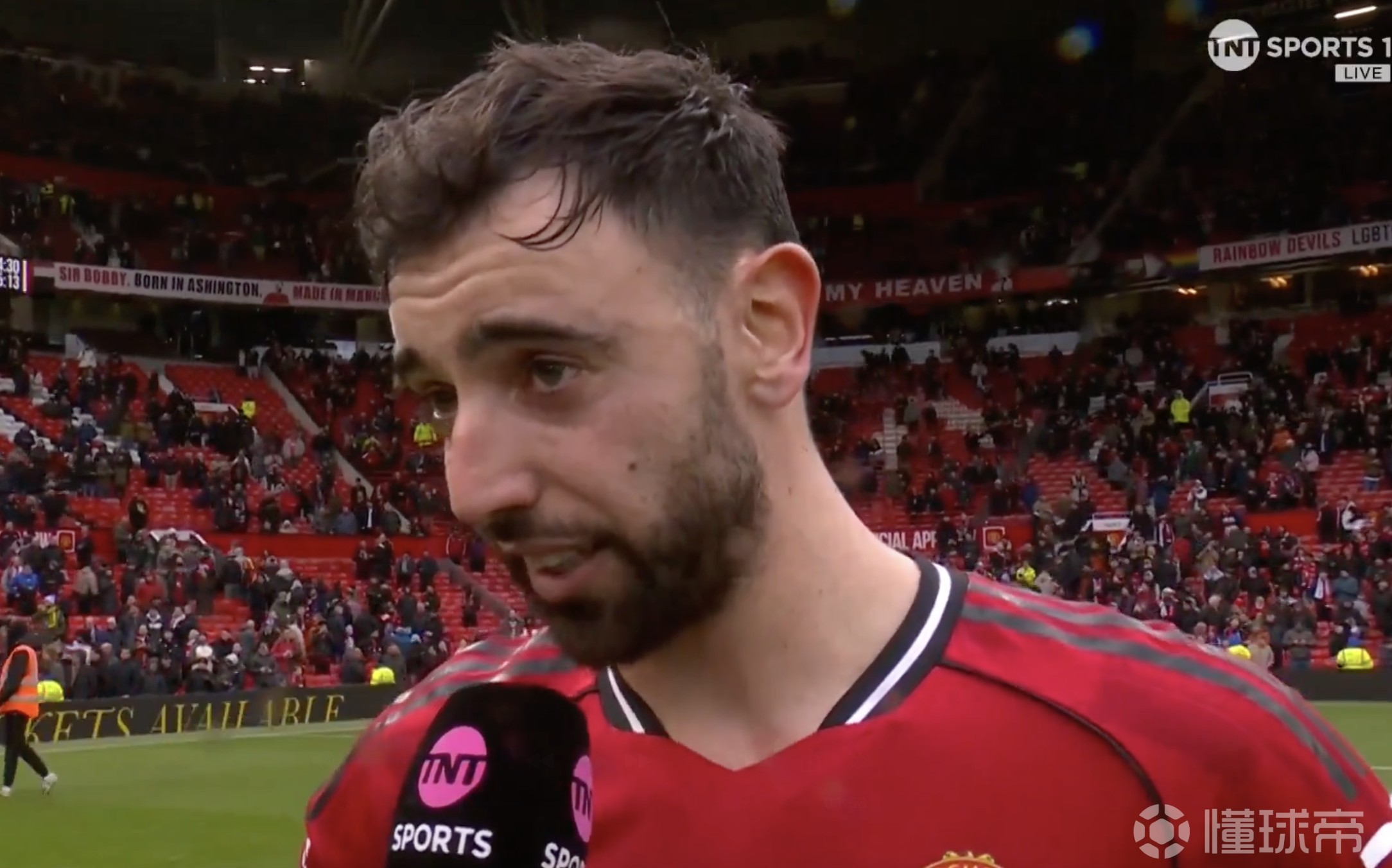 英超第25轮,曼联主场2-0击败热刺,此役打入一球的曼联队长布鲁诺-费尔南德斯赛后接受了TNT体育的采访。